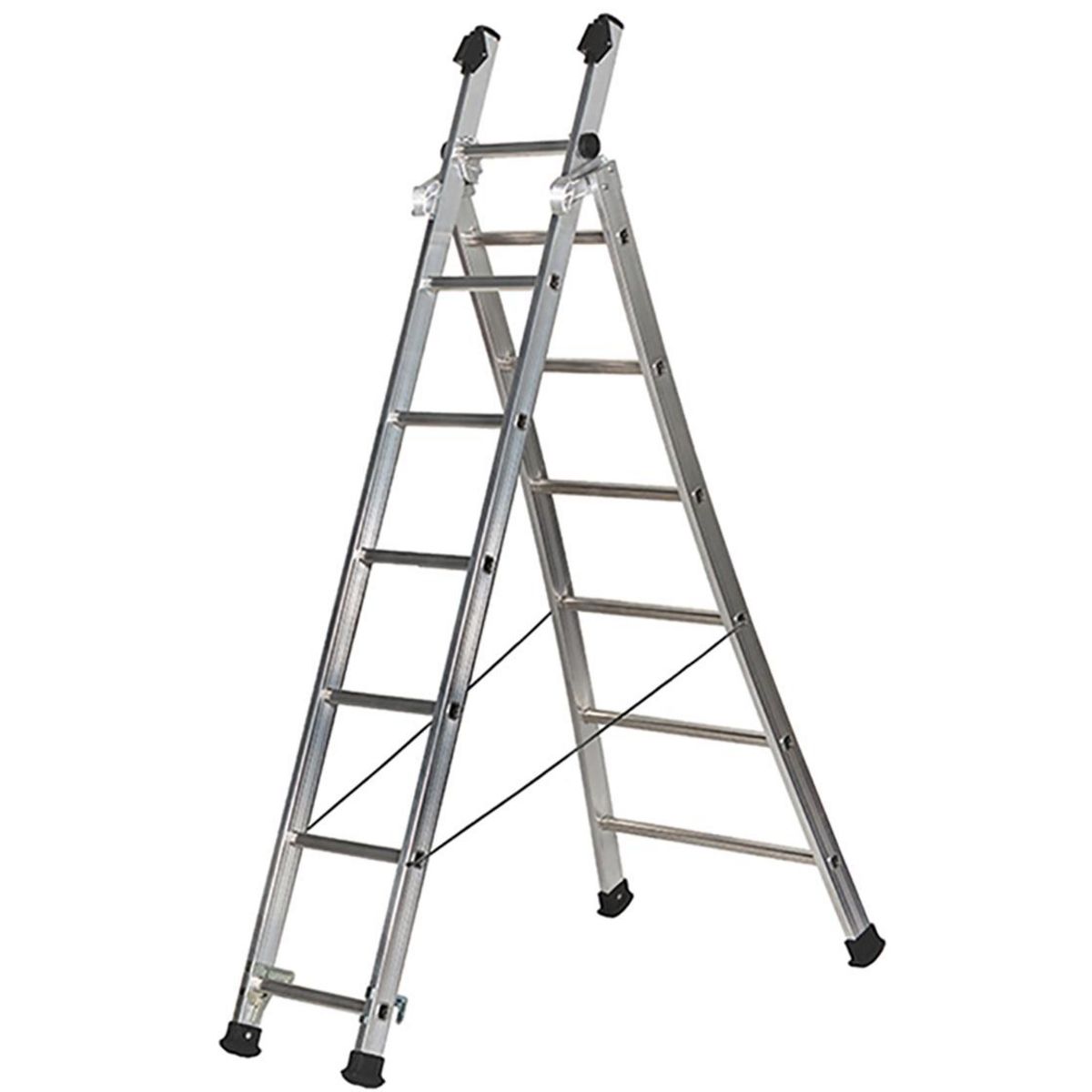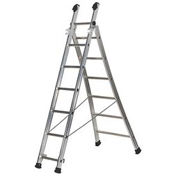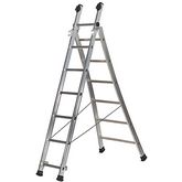 Échelle transformable 2 plans PRT2 2m50/3m90- 3 positions d&rsquo,utilisation : en appui, en escabeau, en escalier- 7+8 barreaux- Base évasée pour une meilleure stabilité sur les sols irréguliers- Patins muraux- Articulations haute résistance fonte aluminium- Verrouillage des plans coulissants sécur