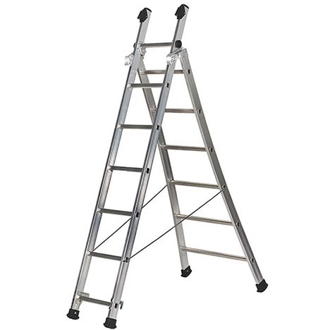 Échelle transformable 2 plans PRT2 3m60/5m85- 3 positions d&rsquo,utilisation : en appui, en escabeau, en escalier- 11+12 barreaux- Base évasée pour une meilleure stabilité sur les sols irréguliers- Patins muraux- Articulations haute résistance fonte aluminium- Verrouillage des plans coulissants séc