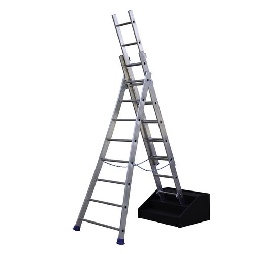 Optez pour l’échelle transformable 3 plans (3 x 9 barreaux) KET3 2m60/5m40 de chez CENTAURE de fabrication française et conforme aux exigences de la Norme EN 131. L'échelle transformable est en aluminium et permet une utilisation en 3 positions : en appui, en escabeau et en escalier. L’ouverture de l’échelle est guidée par un axe en acier renforcé pour une mise en place sécurisée. L’échelle Centaure peut être utilisée aussi bien en extérieur qu’en intérieur et facilitera la plupart de vos travaux. L’échelle est garantie 3 ans.
