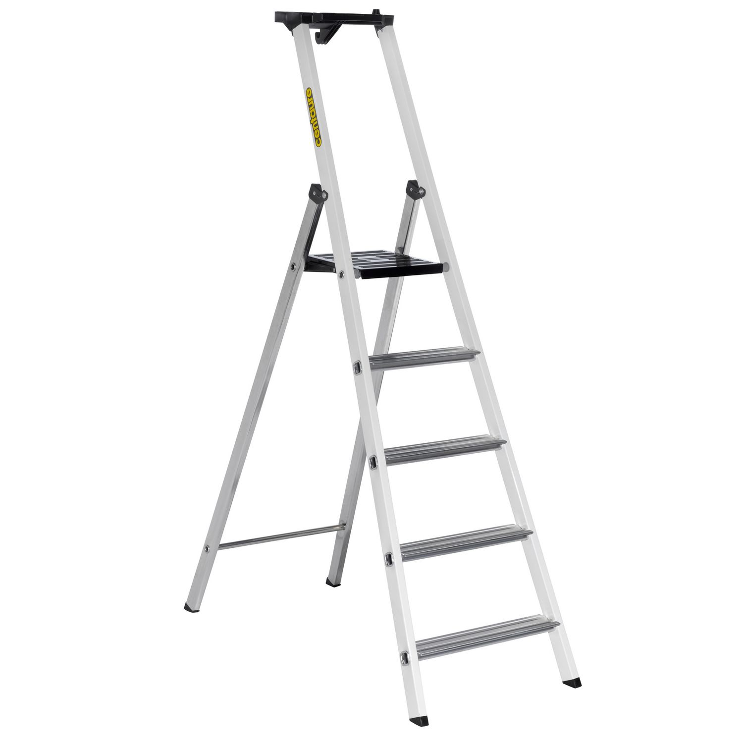 L'escabeau MB 5 marches de Centaure possède une hauteur de travail de 3 m. Il est équipé d'une tablette porte-outils ainsi que des patins anti-dérapants.