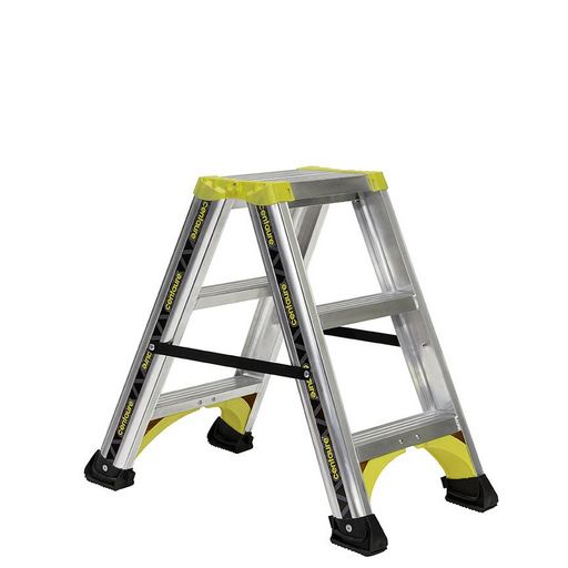 Marchepied double accès ALPHA 2x3 marches- Larges et solides profils aluminium.- Accès confortable par marches antidérapantes de largeur 80 mm.- Auto stables en position fermée.- Clips intégrés aux patins pour maintenir le produit fermé lorsqu'il est plié.- Deux sangles de sécurité anti-écartement.-