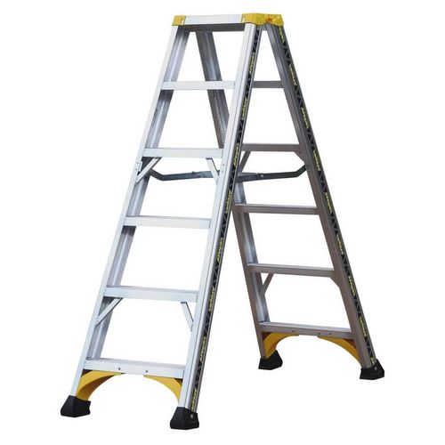 Marchepied double accès ALPHA 2x6 marches- Larges et solides profils aluminium.- Accès confortable par marches antidérapantes de largeur 80 mm.- Auto stables en position fermée.- Clips intégrés aux patins pour maintenir le produit fermé lorsqu'il est plié.- Deux sangles de sécurité anti-écartement.-