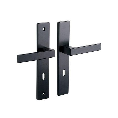 Destination : ChambrePercement : Trou de cléCouleur : NoirFinition du produit : VerniAspect : MatMatière principale sur la masse totale du produit : AluminiumType de bois : Sans boisAccessoire de montage fournis : Vis relieuseEntraxe de fixation (en mm) : 195Section du carré (fouillot) (en mm) : 7Pr