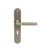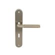 Destination : ChambrePercement : Trou de cléCouleur : GrisFinition du produit : NickeléAspect : MatMatière principale : AluminiumType de bois : Sans boisAccessoire de montage fournis : Vis relieuseEntraxe de fixation (en mm) : 195Section du carré (fouillot) (en mm) : 7Longueur de la poignée (en mm)