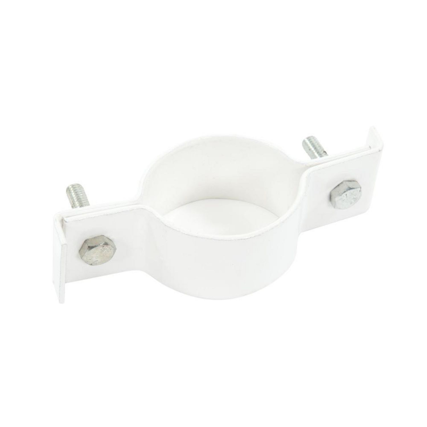 6 colliers de fixation pour poteaux ronds BLANC ø, 48 mm. Ces colliers vous permettront de fixer efficacement le panneau rigide à ses poteaux rond.Caractéristiques techniquesMatière : Acier thermolaquéColoris :BlancVendu avec : Vis et ecrouNombre de pièces : 6