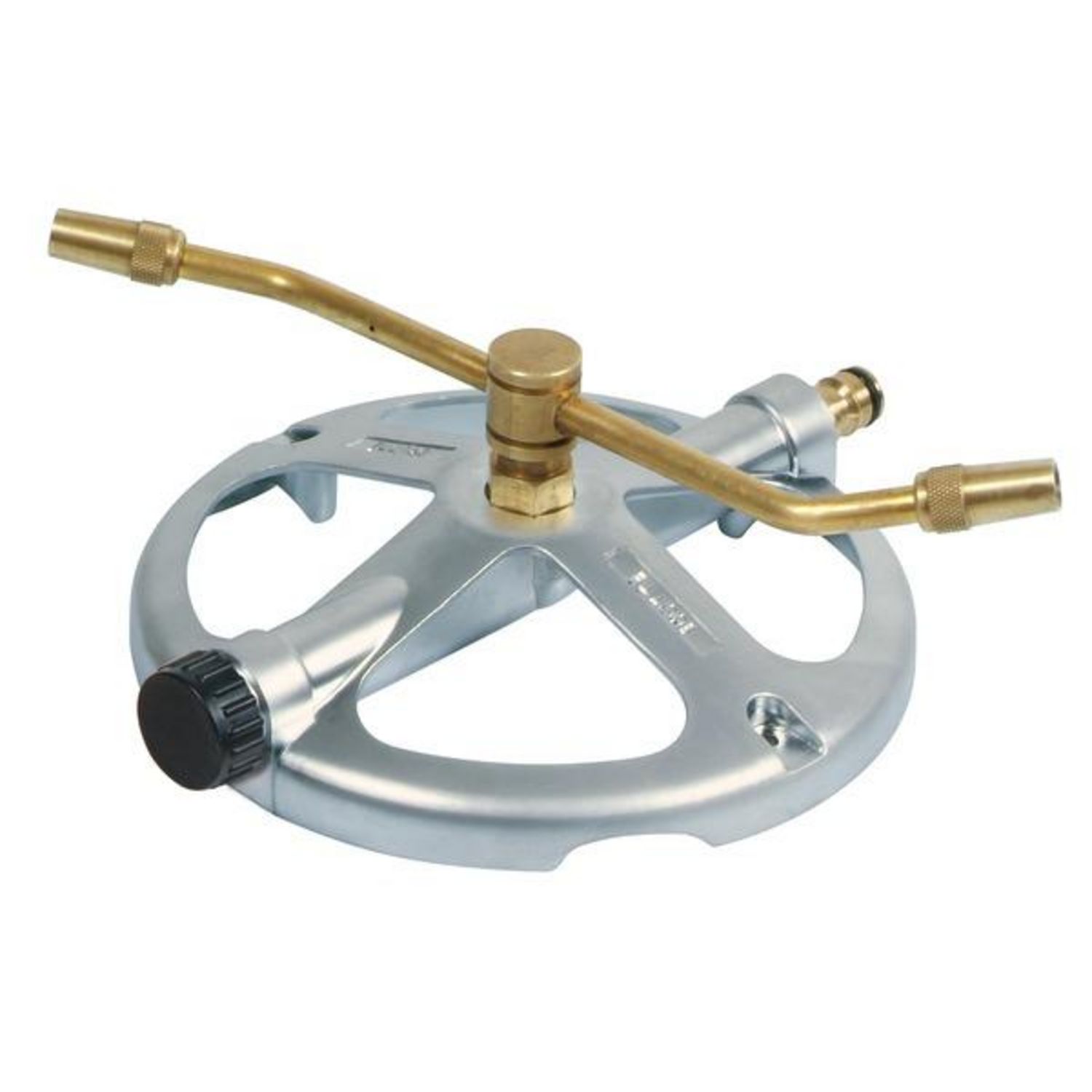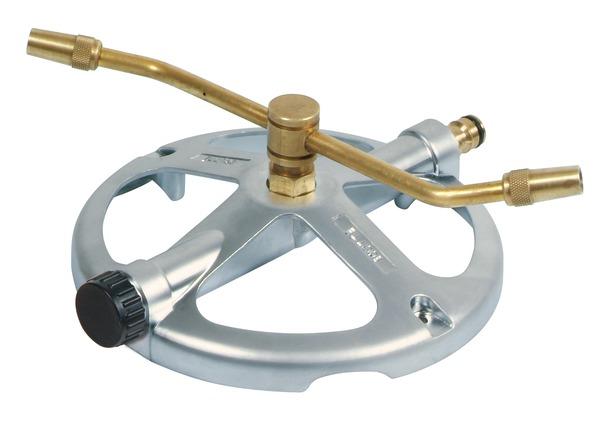 Arroseur rotatif sur embase Parfait pour arroser les pelouses de taille moyenne. Jet réglable (jet pluie ou jet droit) par simple vissage des embouts La surface couverte est circulaire