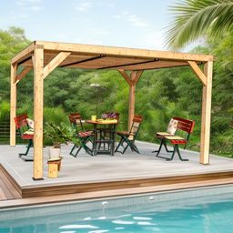 Auvent VENETO en douglas massif avec ventelles toit - S.h.t. : 12,20 m2 - dimensions 3,39 m x 3,60 m
