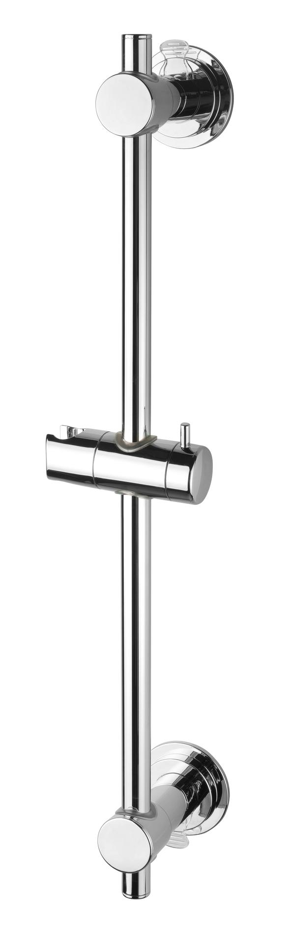 - Matière : inox chromé - Longueur : 60,5 cm - Diamètre : 18 mm - Fixation : embases fixes équpées de ventouse. - Plus besoin de percer le mur. - Fixation sans outils. - S'installe n'importe où (sur une surface lisse et propre). Possibilité de modifier l'emplacement à tout moment. - En cas de surface poreuse, appliquer la ventouse Easy lock sur le sticker (fourni) préalablement fixé au mur. Le sticker n'est pas utile sur une surface lisse. - Très facile à manipuler : il suffit de pousser le loquet du système de fixation pour l'installer et de le tirer pour le démonter. - Système breveté Easy Lock à ventouse extra résistant et supportant un poid total de 3kg maximum - Support douchette : coulissant et inclinable