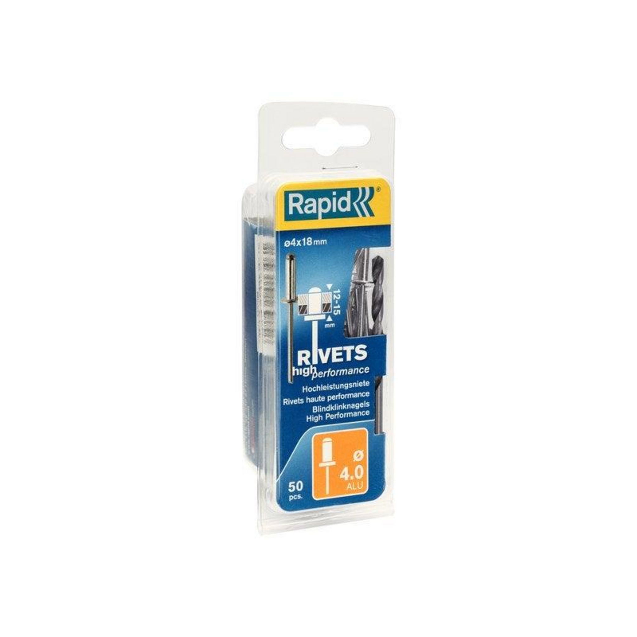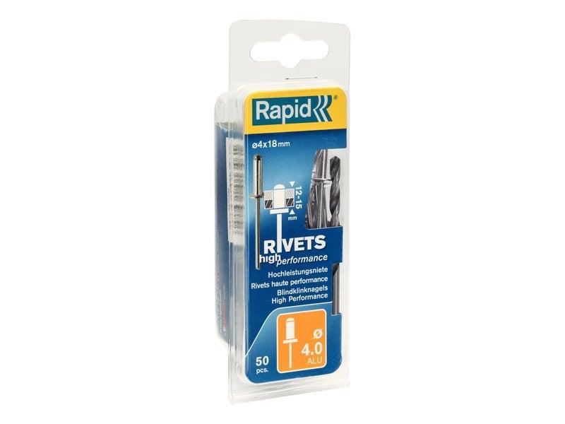 Blister de 50 rivets aveugles haute performance tête plate 4 x 18 mm alu