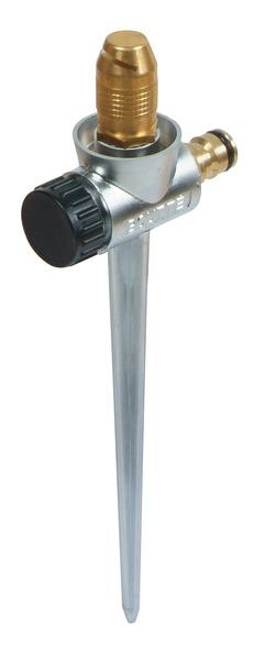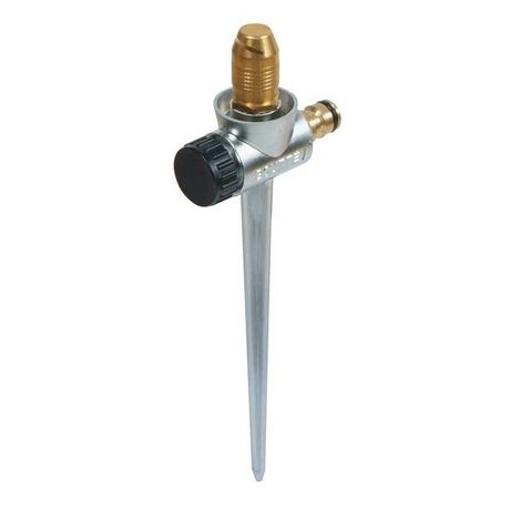 Buse à jet latéral Longueur de jet de 3 m. Idéal pour arroser les massifs en longueur. L',eau diffusée en pluie fine vers le haut, passe au dessus des tiges et des feuilles sans risque de les casser. Possibilité de monter les supports en série, suivant la longueur des massifs