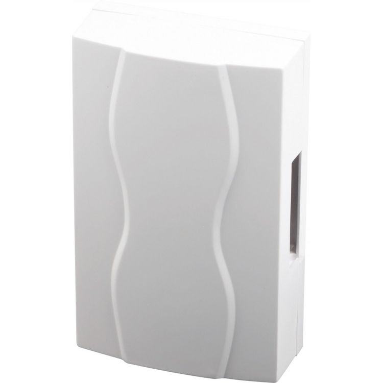 Carillon filaire électromécanique blanc à alimentation 230V via transformateur déporté ou alimentation par piles. Dans le cas d'une alimentation via transformateur, le courant de sortie de celui-ci doit être 12V continu (CC ou DC).