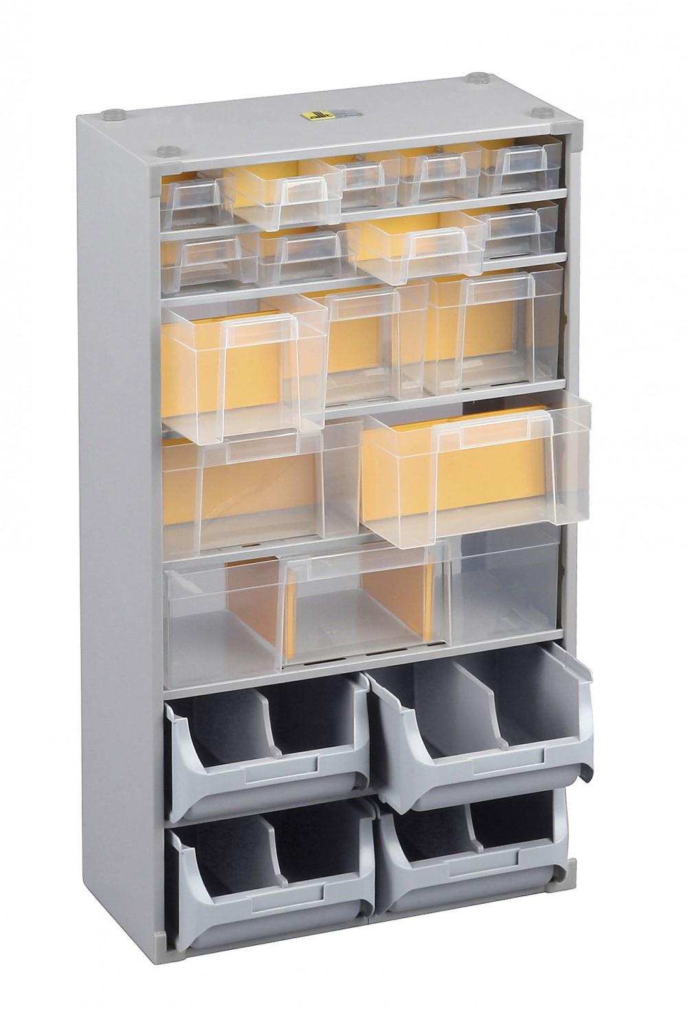 Doté de 4 grands tiroirs ouverts pour 1 accès facile. Possibilité de compartimenter l'intérieur des tiroirs avec les 20 séparateurs amovibles. Identification rapide du contenu grâce au porte-étiquette sur chaque tiroir. Cadre aux coins ronds pour éviter de se blesser.Couleur: GrisEmboîtable: NonFixa