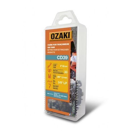 En savoir +Chaîne de tronçonneuse OZAKI sous coque semi carrée: .3/8 LP .050 (1,3mm) 33 entraîneurs ( E33 ).