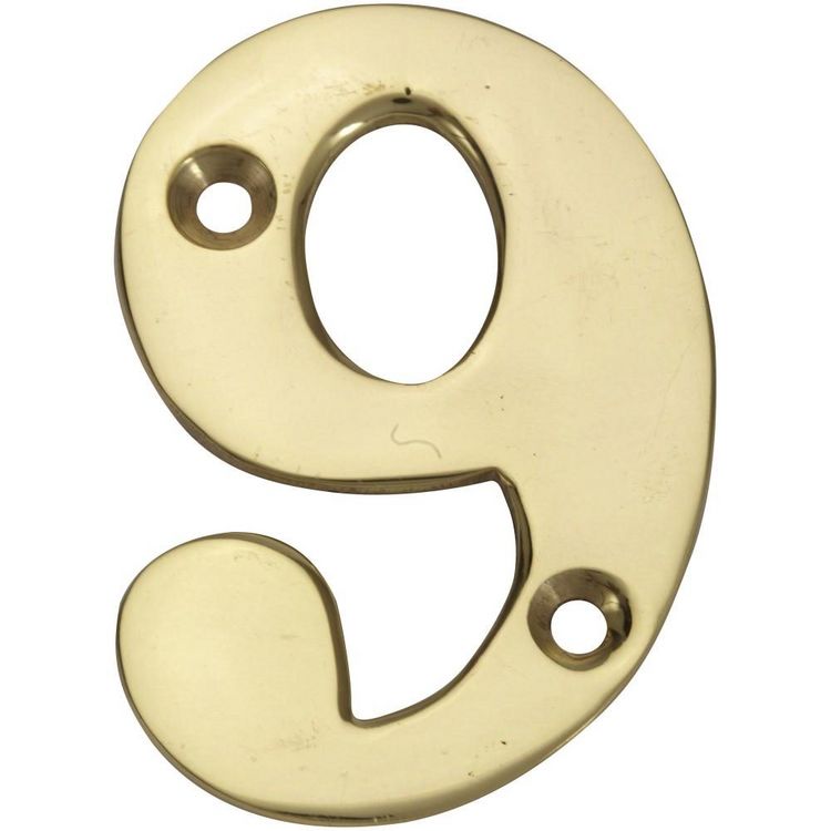 Chiffre 9 en laiton poli H.5.1 x l.3.5 cm