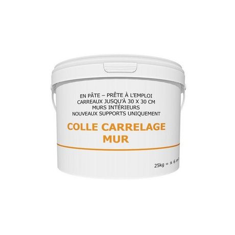 Destination : MurLieu d'utilisation : IntérieurFormat de carreau (en cm) : 30 x 30Temps de prise indicatif minimum (en h) : 12Type de support : CimentNom du produit : Colle en pâteCouleur : BlancTexture : PâteContenance (en kg, l...) : 25KGColle compatible carrelage fine épaisseur : OuiCompatible po