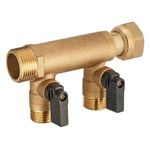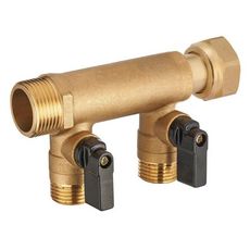 Collecteur à écrou libre M/F 20x27, 2 départs + vannes M15x21