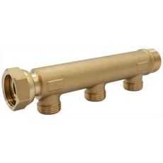 Ecrou libre permettant un alignement facile et parfait de deux collecteursCollecteur écrou libre avec entrée et sortie 20x27, incluant 3 départs mâles 15x21, pour distribuer efficacement l'eau dans un logement. Le jumelage de collecteurs est facilité grâce à l'écrou libre qui permet une fixation rap