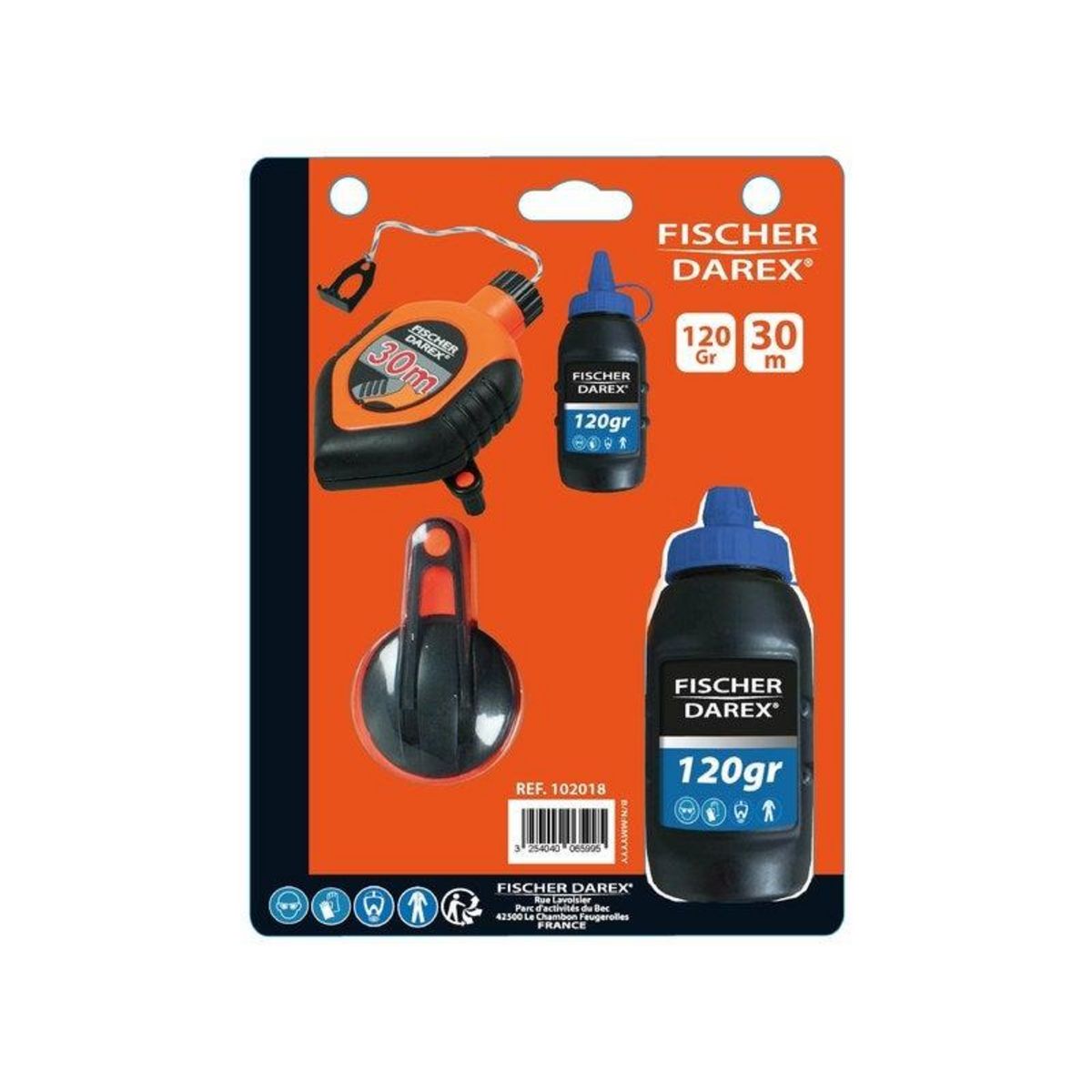 Cordeau longueur 30 metre et poudre a tracer 120 grammes fischer darex