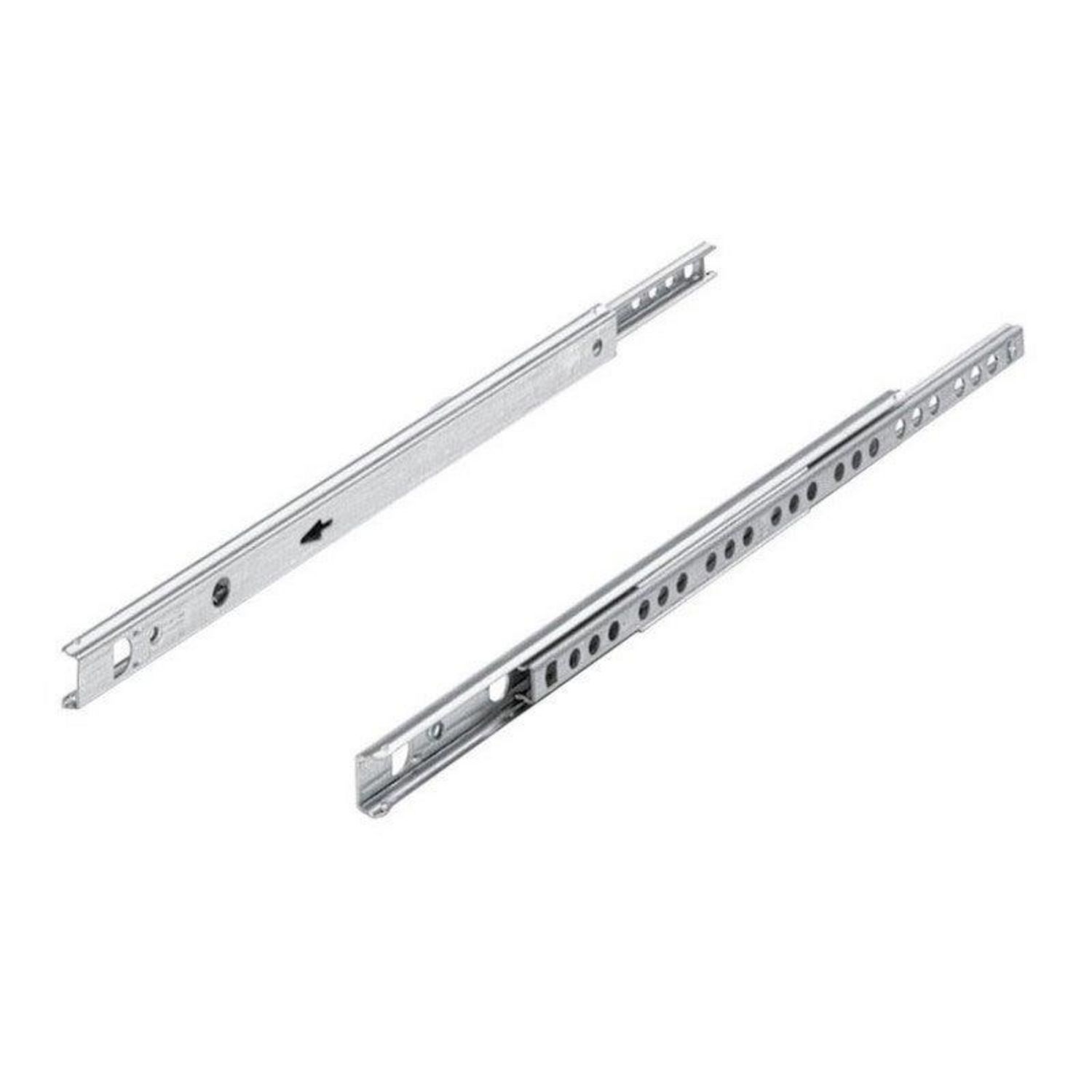 Ecartement entraxe (en mm): 153 Poids du produit nu (en kg): 0.13 Type de sortie: Partielle Fixation: Latéral Système: Roulement de boules avec extension partielle Matière principale: Acier Finition du produit: Zingué Longueur de tiroir (en cm): 30.5 Profondeur minimum de tiroir (en cm): 18.6 Char