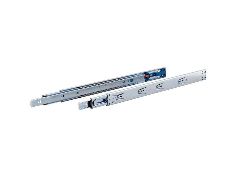 Ecartement entraxe (en mm) : 294Poids du produit nu (en kg) : 1.264Type de sortie : TotaleFixation : LatéralSystème : A billeMatière principale sur la masse totale du produit : AcierFinition du produit : ZinguéLongueur de tiroir (en cm) : 45Profondeur minimum de tiroir (en cm) : 45Charge maximale su