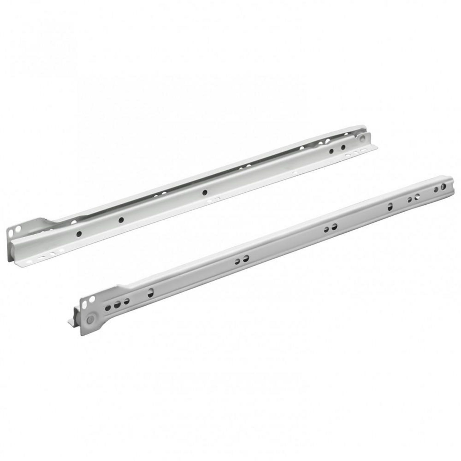 Mise en place sans outillageEcartement entraxe (en mm): 320Poids du produit nu (en kg): 0.424Type de sortie: PartielleFixation: LatéraleSystème: A galetsMatière principale: AcierFinition du produit: EpoxyLongueur de tiroir (en cm): 50Profondeur minimum de tiroir (en cm): 50Charge maximale supportée