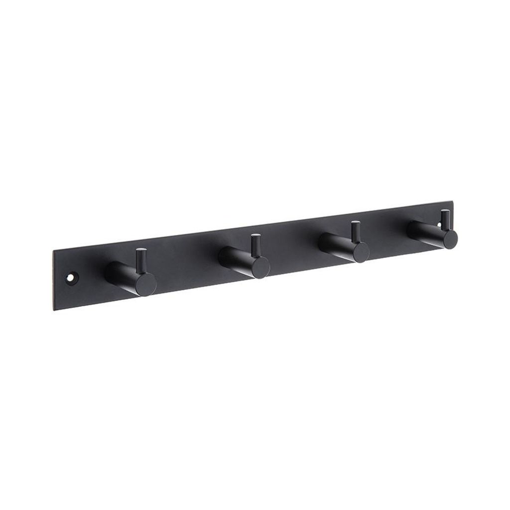 Barre de suspension en métal avec 4 crochets. Les vis à tête noire, y compris les chevilles pour la fixation au mur, font partie de l'emballage.