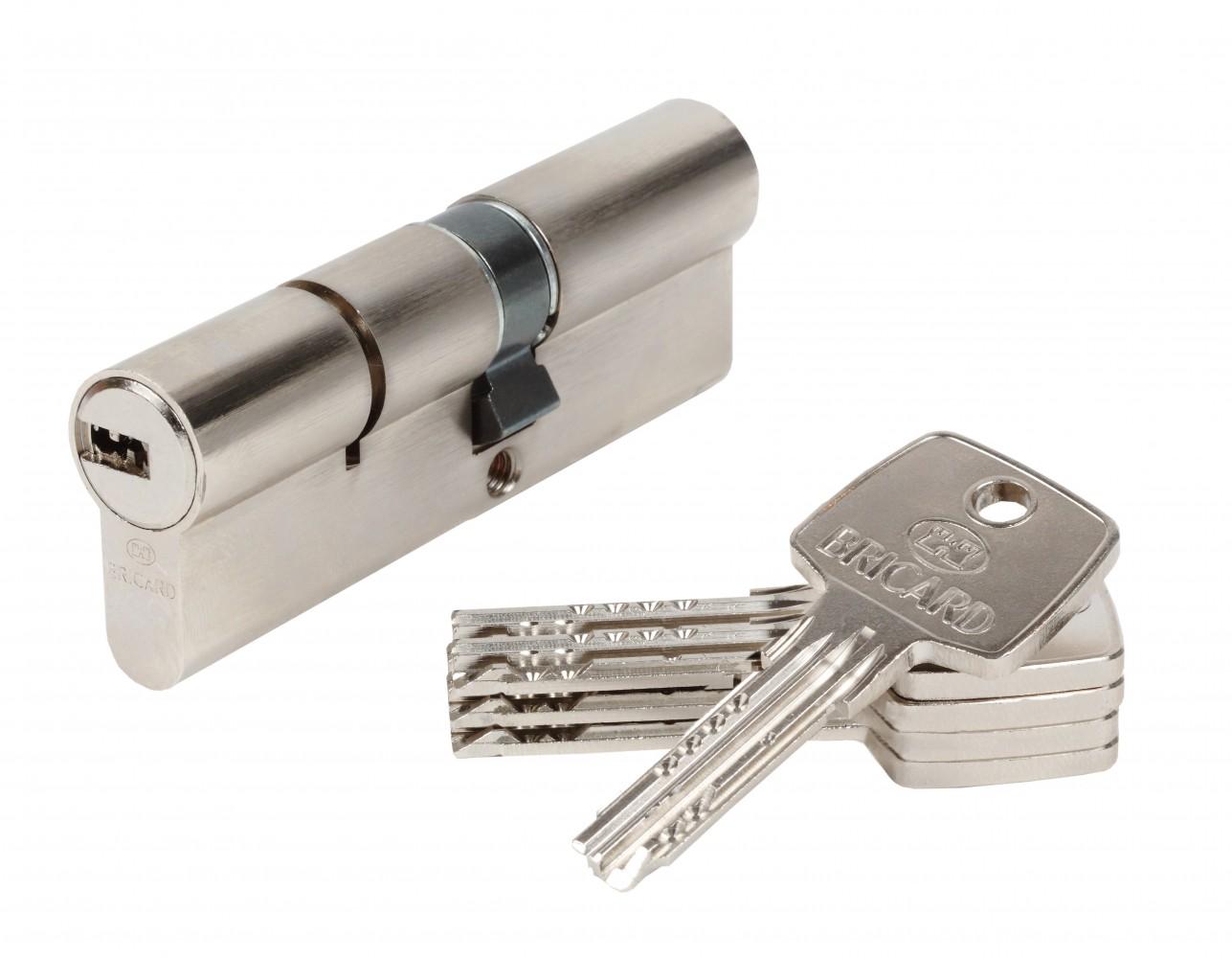 Cylindre laiton nickelé 10 pistons. Protections contre le perçage. Protections contre le crochetage. Carte personnelle.