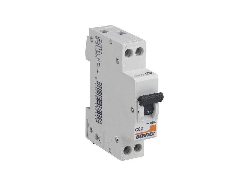 Marque du produit : DEBFLEXRéseau électrique : Phase + neutreType de connexion : Connexion vissée haute et bassePouvoir de coupure (en kA) : 3Intensité (en A) : 2Tension (en V) : 230Certification : NFHauteur (en mm) : 90Largeur (en mm) : 18Nombre de modules : 1Produit emballé : hauteur (en cm) : 8.9