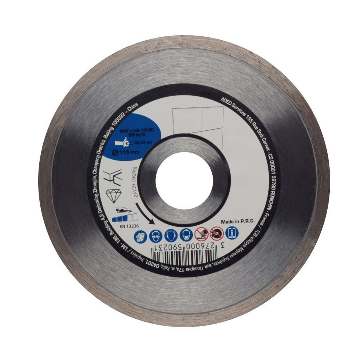 Epaisseur de la meule (en mm): 1.4Diamètre (en mm): 115Niveau de finition: CoupeAlésage (en mm): 22.2Nombre d'unités consommateur: 1Type de matériau: CarrelageType de machine: MeuleuseProduit emballé : hauteur (en cm): 11.8Produit emballé : largeur (en cm): 12Produit emballé : profondeur (en cm): 0.
