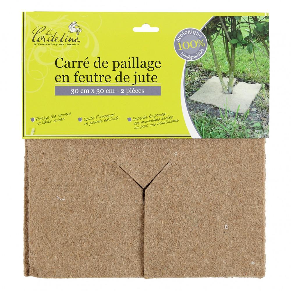 LOT DE 2 CARRÉS DE PAILLAGE EN FEUTRE DE JUTE, 30 X 30 CM - 1 000 GRS / M², PERMET AUX VÉGÉTAUX D'ÊTRE PROTÉGÉS DU GEL ET DU FROID DE L'HIVER MAIS AUSSI DE LA CHALEUR DE L'ÉTÉ.