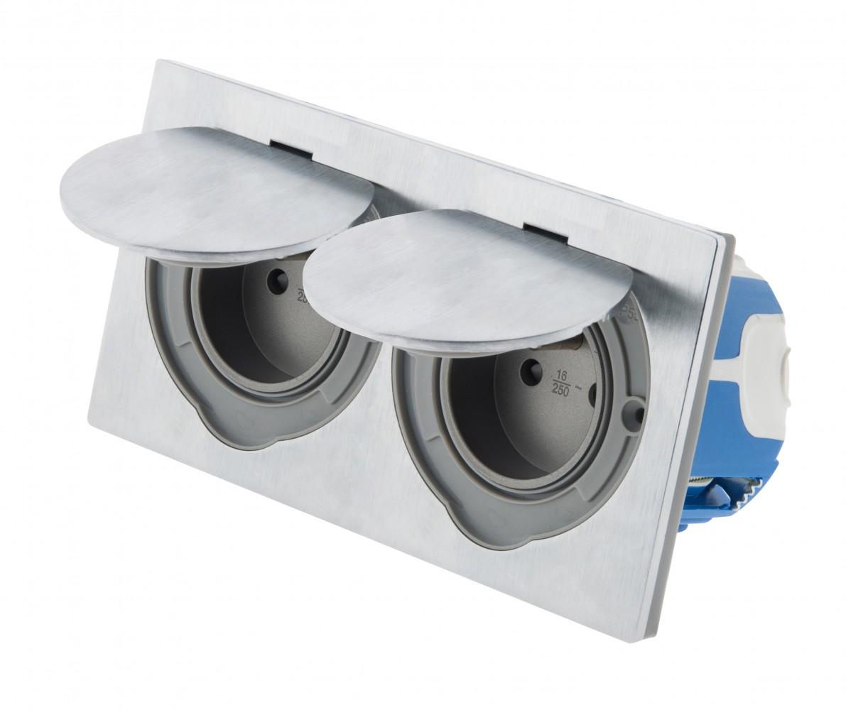 Boîte d'encastrement fournieCouleur: MétalFinition du produit: BrosséHauteur (en mm): 86Largeur (en mm): 157Profondeur (en mm): 50Mode de pose: A encastrerType de fixation: A visMatière principale: MétalProduit emballé : hauteur (en cm): 10.1Produit emballé : largeur (en cm): 16.1Produit emballé : p