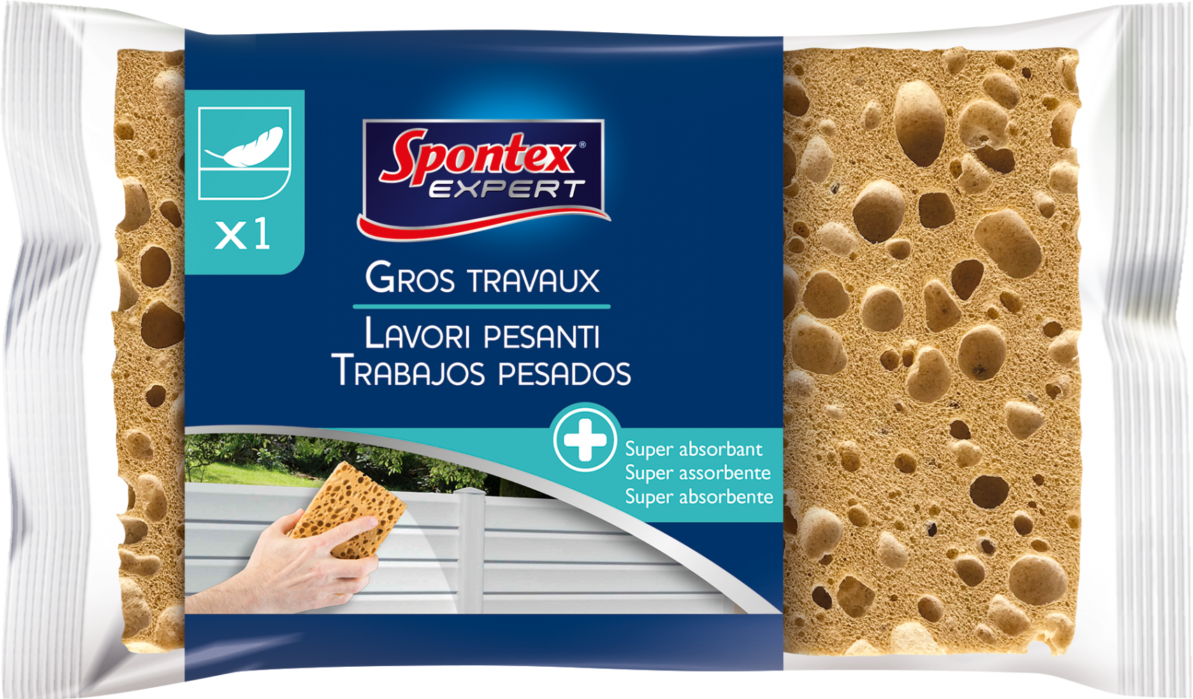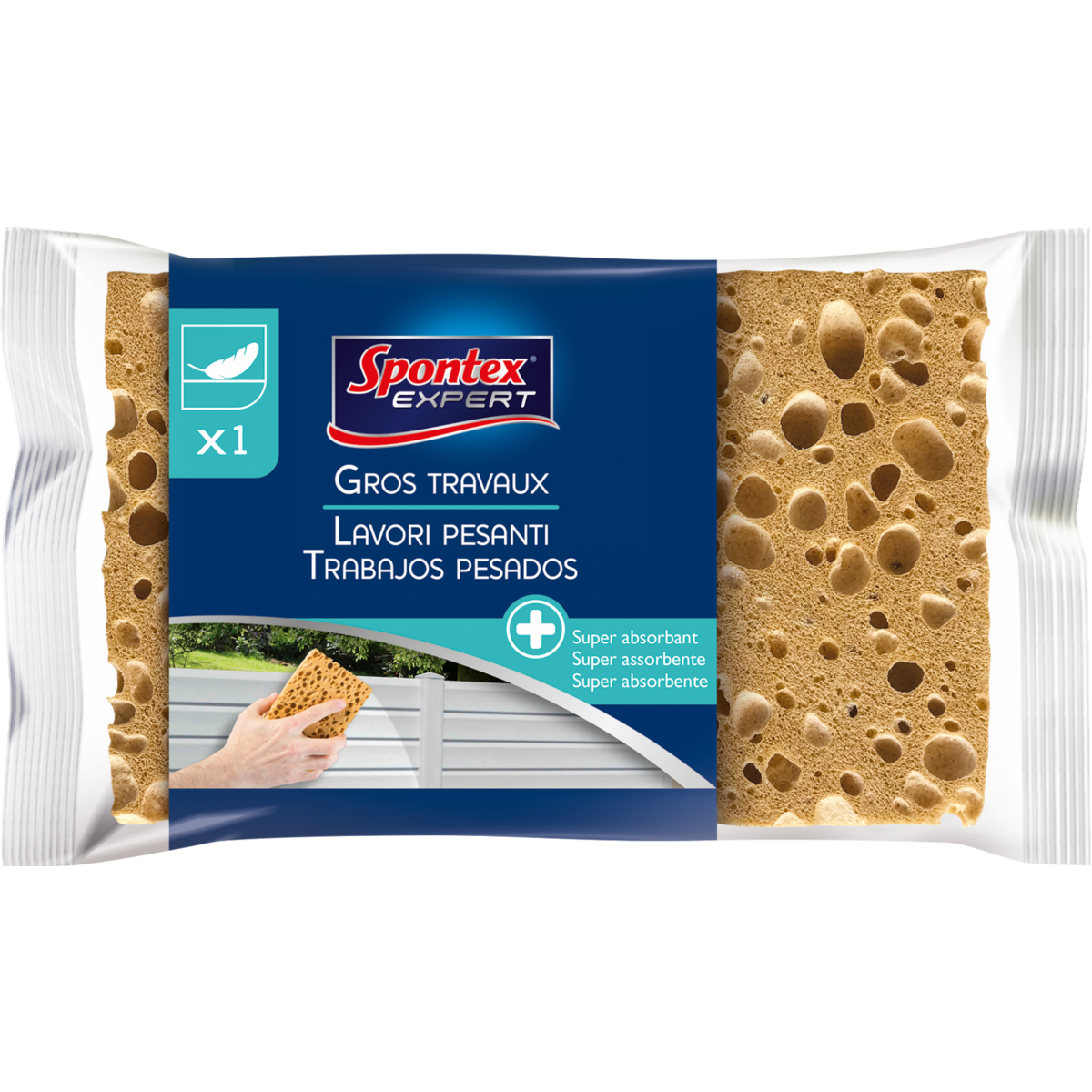 Elle est très résistante et absorbante.Eponge spécifique pour les gros travaux.Usage du produit: NettoyerMatière principale: EpongeMarque du produit: SPONTEX EXPERTFabrication française: NonProduit emballé : hauteur (en cm): 10.2Produit emballé : largeur (en cm): 17.9Produit emballé : profondeur (en