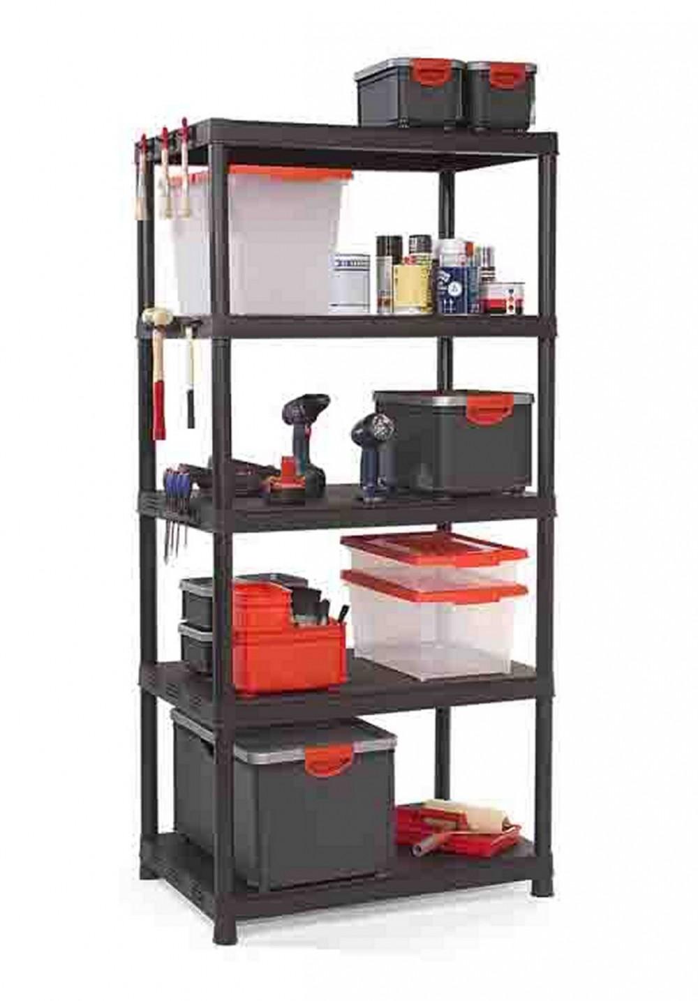 Etagère résine KIS, 5 tablettes, noir l90xH187xP60 cm