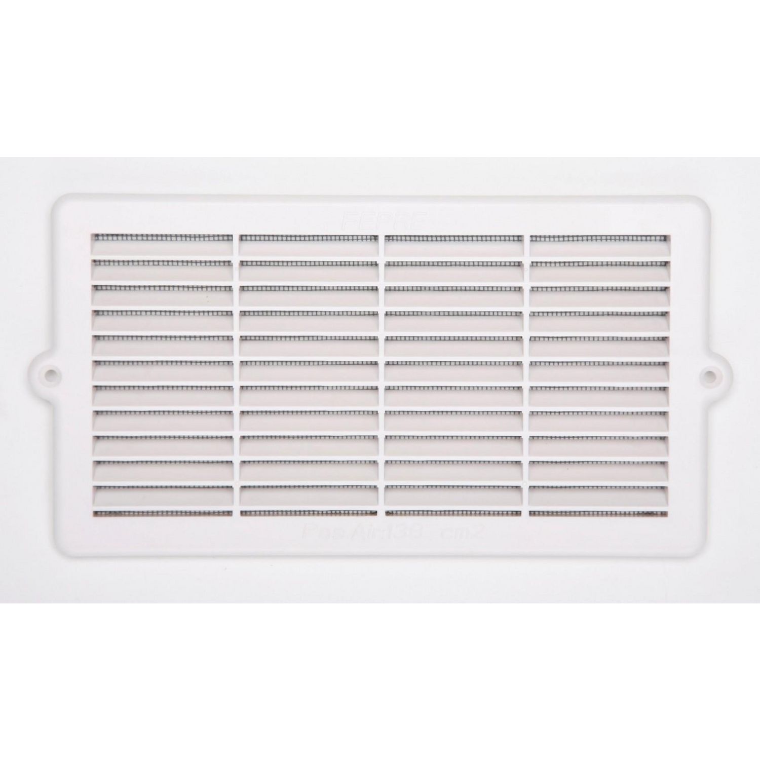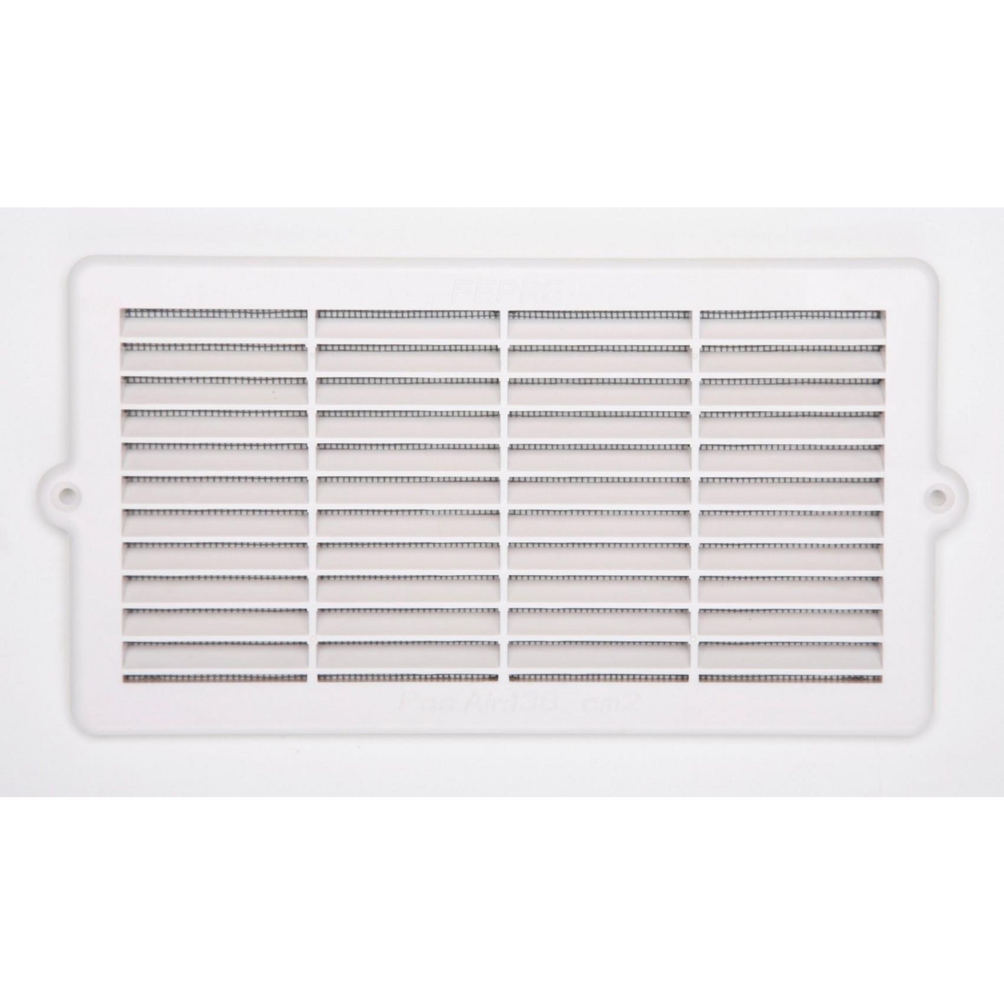 Empêche le passage des insectesHauteur d'encastrement (en cm): 10.7Largeur (en cm): 25.1Matière principale: ABSFinition du produit: NaturelLargeur d'encastrement (en cm): 21Longueur (en cm): 12.9Type de pose: A encastrerUsage du produit: Pour intérieur et extérieurPassage d'air (en cm²): 138Recomman