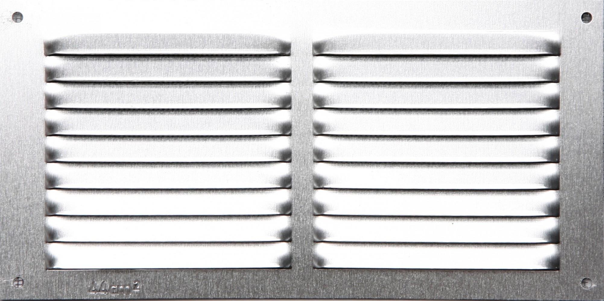 Empêche le passage des insectesLargeur (en cm): 20Matière principale: AluminiumFinition du produit: AnodiséLongueur (en cm): 10Type de pose: A visserUsage du produit: Pour intérieur et extérieurPassage d'air (en cm²): 44Recommandé pour pièces équipées d'appareil à gaz: OuiRéglable: NonAcoustique: No