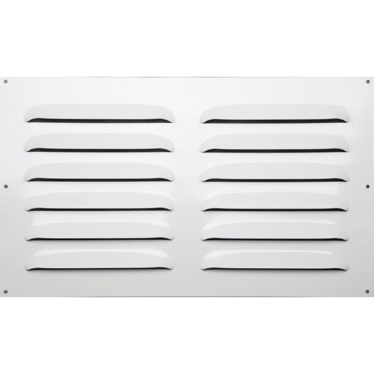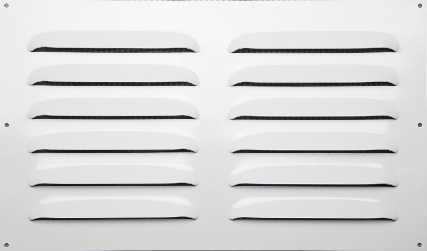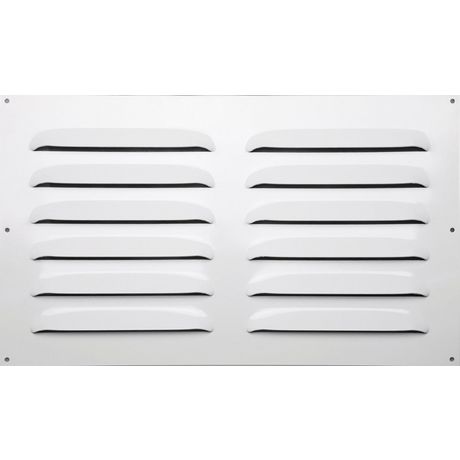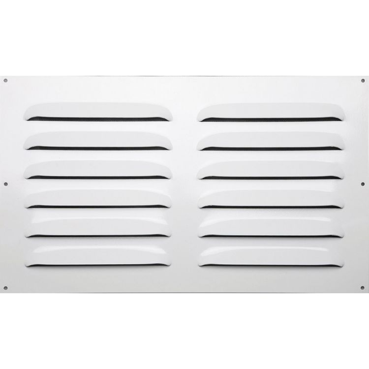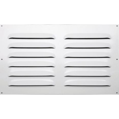 Grand format. Empêche le passage des insectesLargeur (en cm): 50Matière principale: AluminiumFinition du produit: LaquéLongueur (en cm): 30Type de pose: A visserUsage du produit: Pour garages et piscinesPassage d'air (en cm²): 400Recommandé pour pièces équipées d'appareil à gaz: OuiRéglable: NonAcou