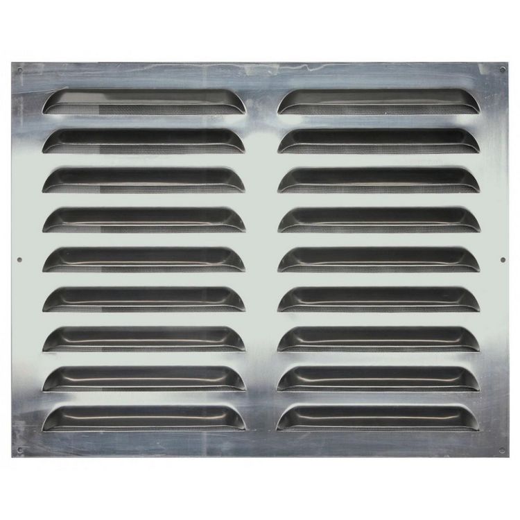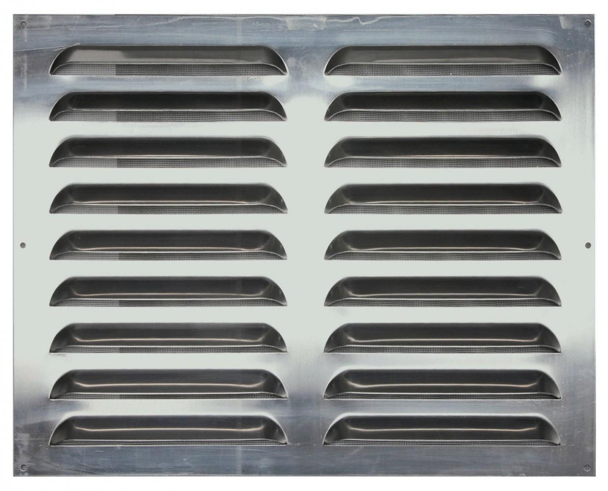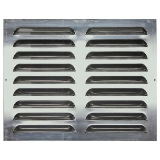 Grand format. Empêche le passage des insectesLargeur (en cm): 50Matière principale: AluminiumFinition du produit: NaturelLongueur (en cm): 40Type de pose: A visserUsage du produit: Pour garages et piscinesPassage d'air (en cm²): 600Recommandé pour pièces équipées d'appareil à gaz: OuiRéglable: NonAc