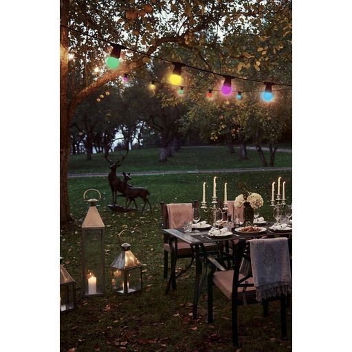 Guirlande LED de qualité professionnelle - idéale pour une ambiance guinguetteLongueur de la guirlande : 10 mètres. Cette guirlande est équipée de 10 ampoules multicolor prêtes à l'emploi (fournies). Forme des ampoules : sphérique. Technologie : LED. Puissance d'éclairage : 300 lumens. Type de culot