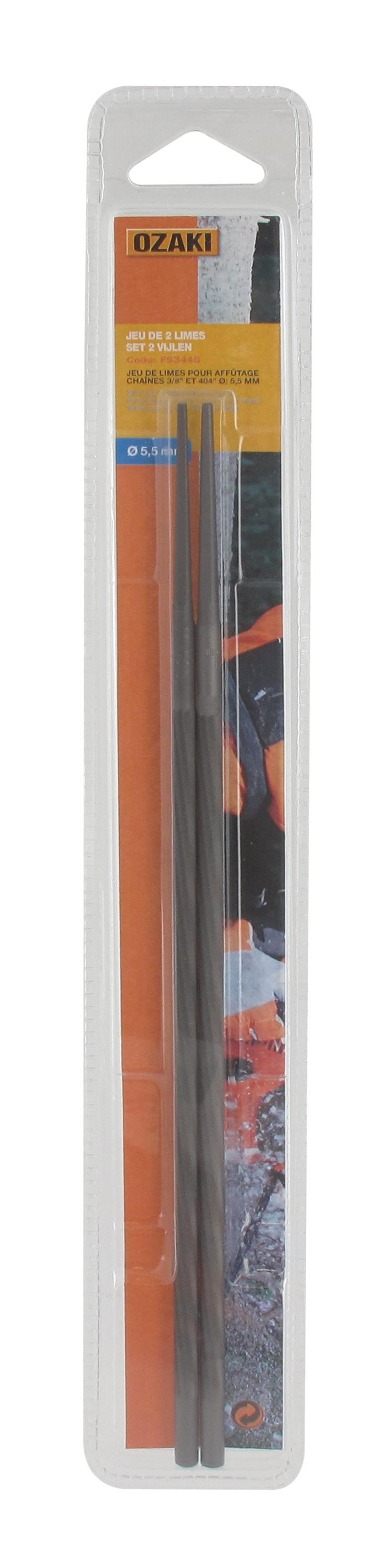 Jeu de 2 limes pour affutage chaine 3/8 et 404 - Ø: 5,5mm. (sous coque).Jeu de 2 limes pour affutage chaine 3/8 et 404 - Ø: 5,5mm. (sous coque).Usage du produit: affûtageProduit emballé : hauteur (en cm): 32.7Produit emballé : largeur (en cm): 4.9Produit emballé : profondeur (en cm): 1.4Produit