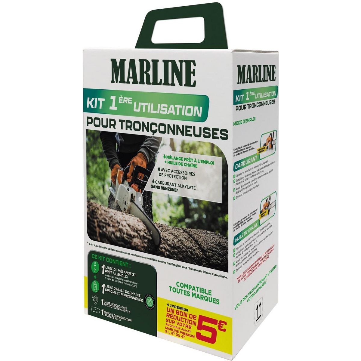 Kit 1ere utilisation tronçonneuse 2 Temps - Mélange sans benzène + huile de chaîne + accessoires