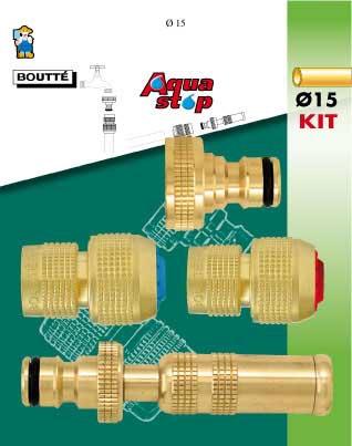 Kit d',arrosage comprenant : - 1 lance automatique - 1 raccord aquastop - 1 raccord automatique - 1 nez de robinet automatique Pour tuyau Ø,15 mm