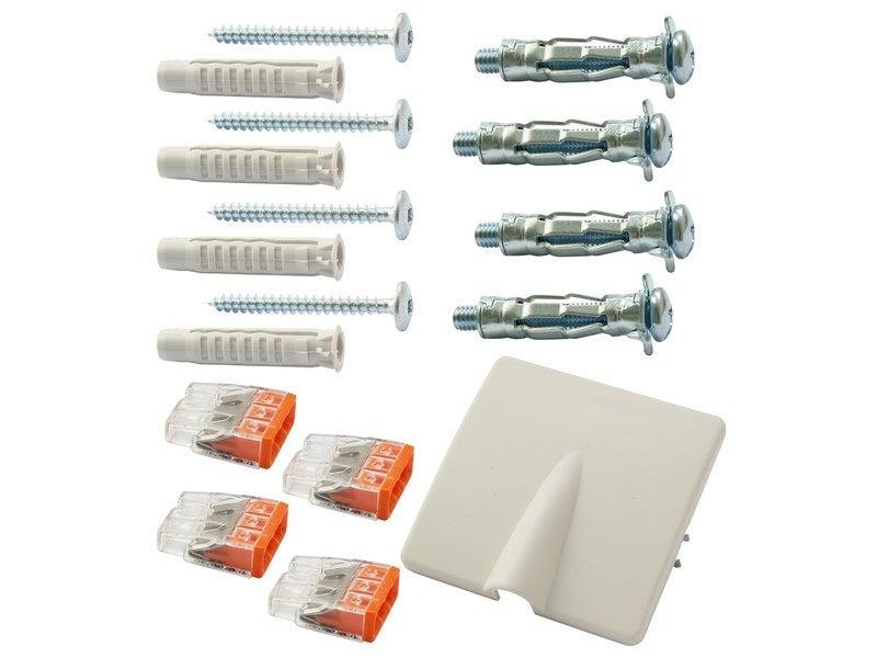 Nom du produit : Kit d'installation pour radiateur électriqueLargeur (en cm) : 15Hauteur (en cm) : 17Profondeur (en cm) : 4Matière principale : ABSGarantie (inclut la garantie légale de conformité) (en années) : 5Produit emballé : hauteur (en cm) : 17Produit emballé : largeur (en cm) : 15.3Produit e