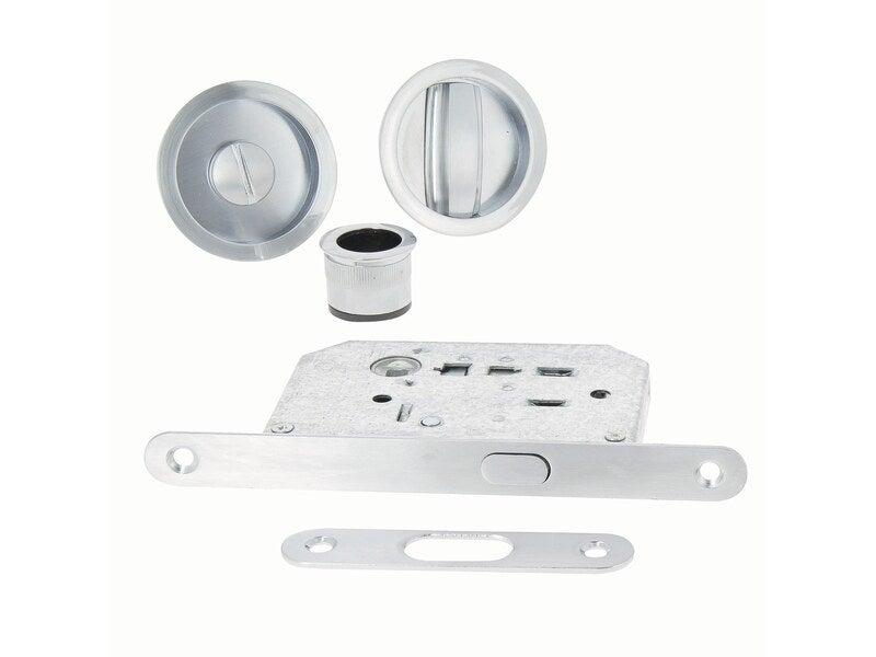 Kit de poignées porte coulissante rond zamak nickelé gris