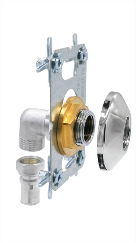 Système breveté garantissant fiabilité, rapidité et facilité de pose / Sortie femelle 1/2 (15x21) pour le raccordement direct d'un robinet de machine à laver / Platine métallique anti-arrachement / Réglage du raccord en profondeur grâce au système d'encoches