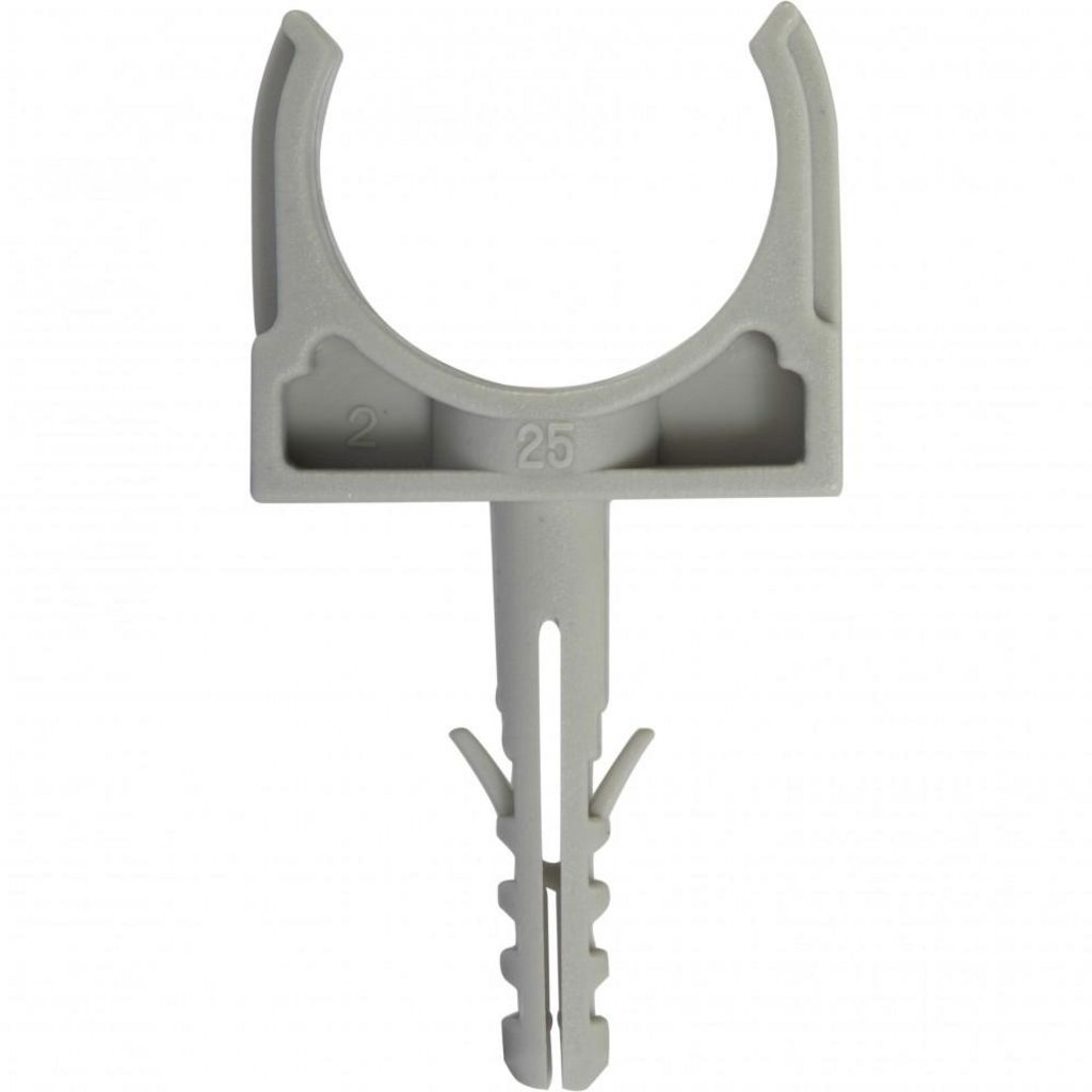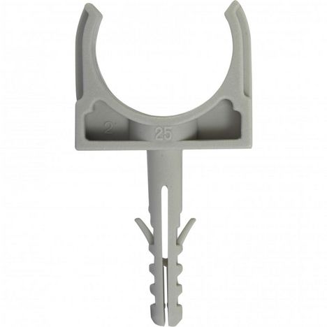 Largeur (en mm): 30Diamètre (en mm): 25Longueur (en mm): 65Usage du produit: Pour la fixation des tubesDiamètre de serrage minimum (en mm): 25Couleur: GrisMatière principale: PVCComposition du lot: 10 clips et 10 chevillesProduit emballé : hauteur (en cm): 15.1Produit emballé : largeur (en cm): 9.3P