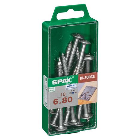 Lot de 10 vis acier tête fraisée bombée torx SPAX, Diam.6 mm x L.80 mm