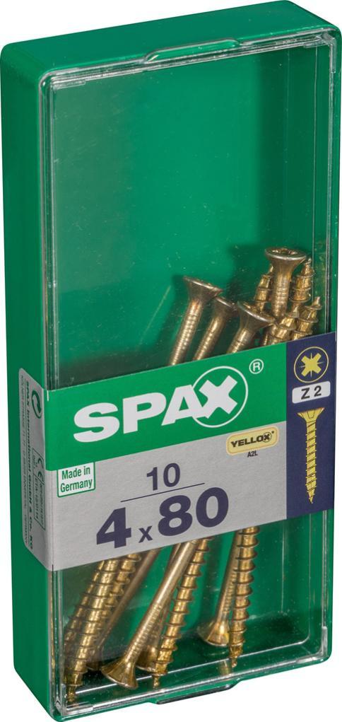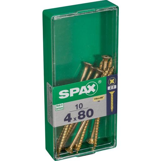 Lot de 10 vis acier tête fraisée pozidriv SPAX, Diam.4 mm x L.80 mm