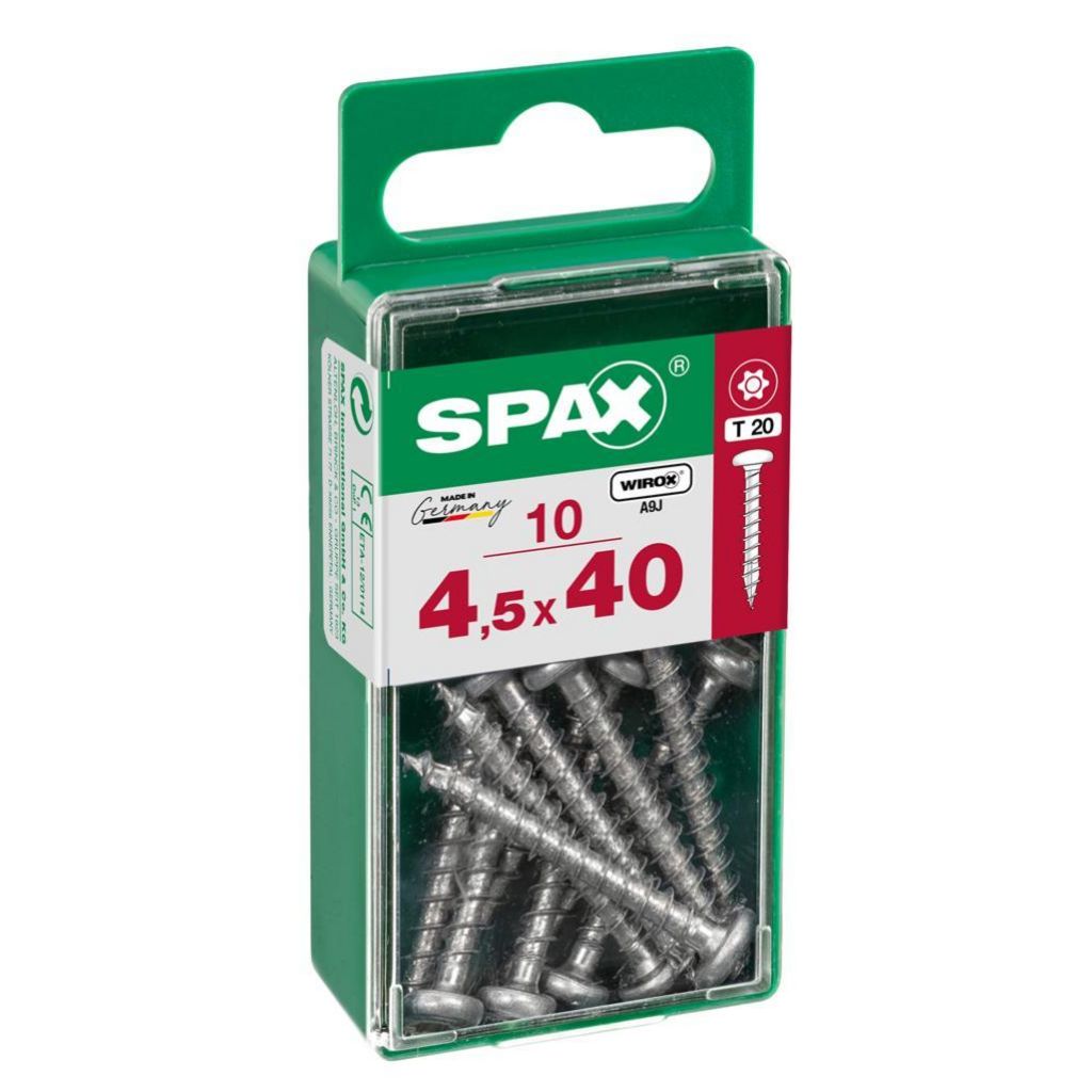 Lot de 10 vis acier tête ronde pozidriv SPAX, Diam.4.5 mm x L.40 mm