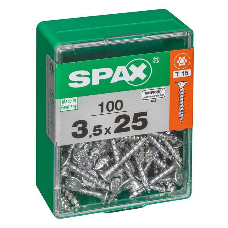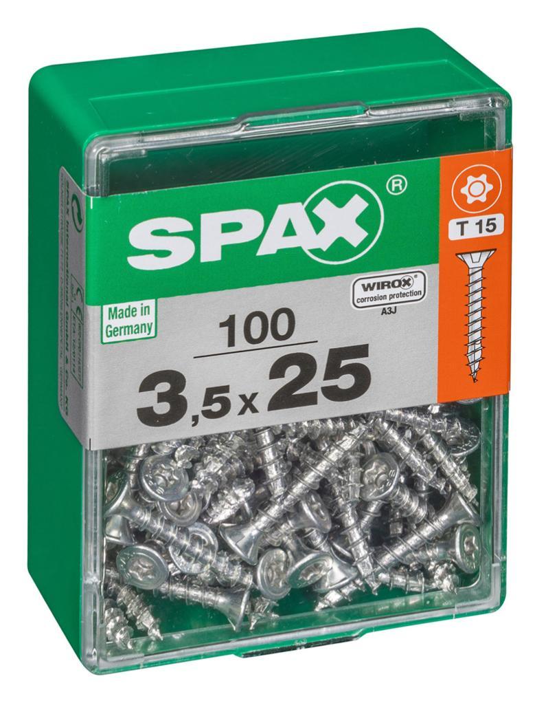 Lot de 100 vis acier tête autofraisée plate SPAX, Diam.3.5 mm x L.25 mm