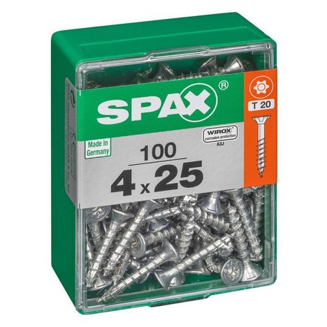 Lot de 100 vis acier tête autofraisée plate SPAX, Diam.4 mm x L.25 mm